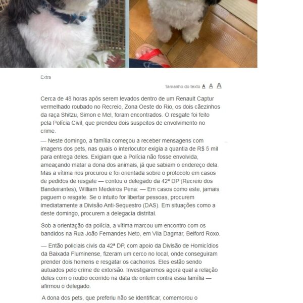 Cadela e filhotes abrigados em delegacia na Zona Oeste são resgatados
